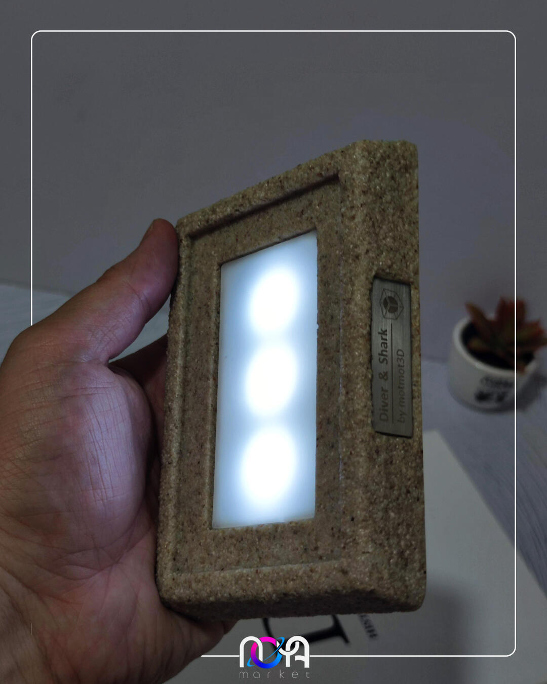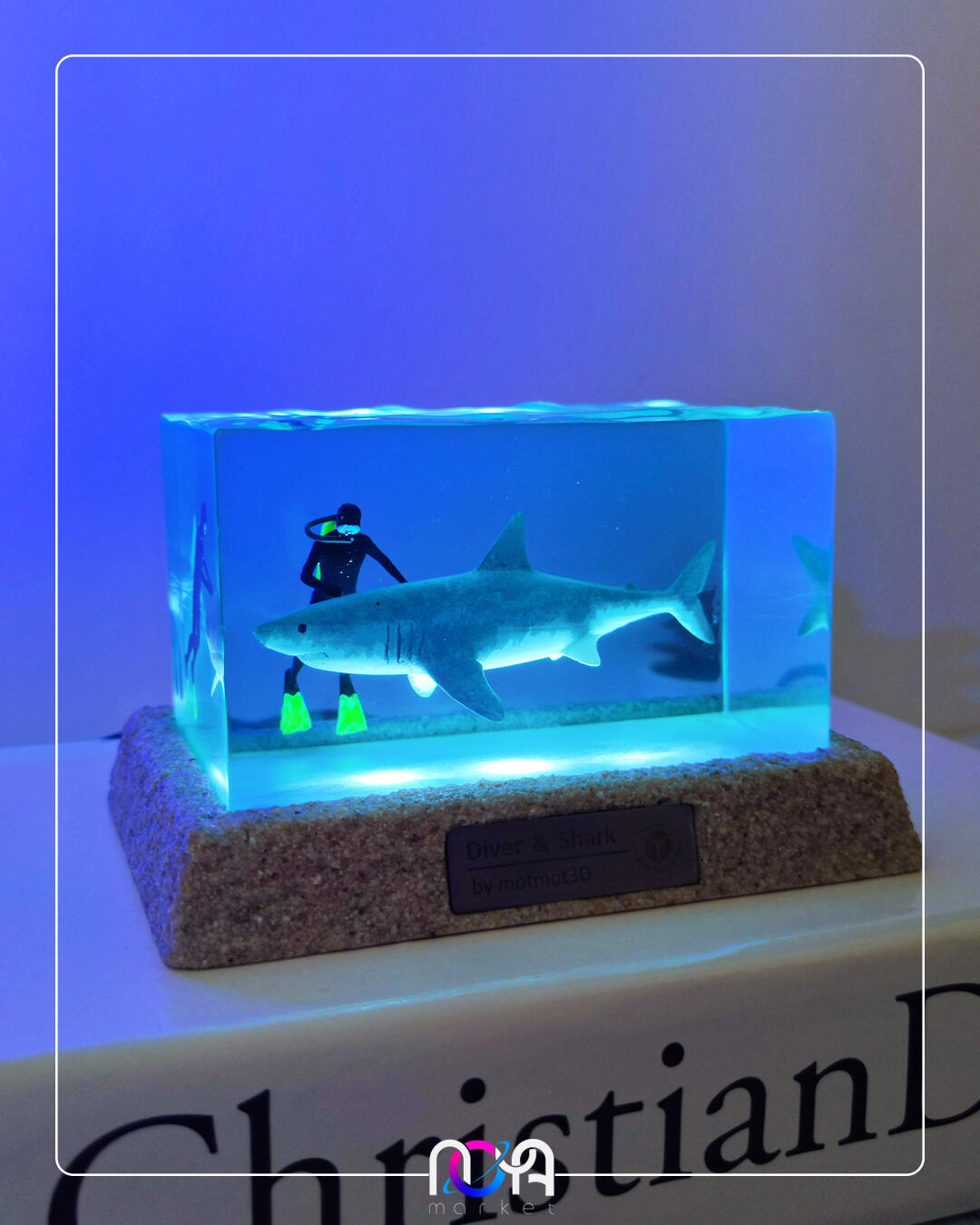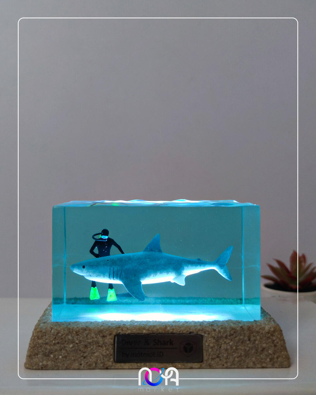 🦈جنس کار از رزینه و دارای کلید پاور لمسیه، با برق کار میکنه و ابعادش حدود ۱۳×۹×۸ سانتیمتره. (انتهای کابل usb میباشد و میتونید از طریق شارژر گوشی، پاوربانک، لپتاپ و ... روشنش کنید)