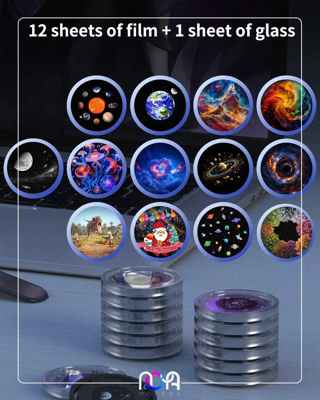 با داشتن 12 دیسک تصویری متنوع بههمراه یک دیسک عمومی، میتوانید تصاویر سیارات، سحابیها، کهکشانها و حتی جنگلهای مرموز را با کیفیت بالا روی دیوار یا سقف اتاق مشاهده کنید. این دستگاه نهتنها چراغ خوابی فانتزی است، بلکه یک هدیه خاص و متفاوت برای مناسبتهایی مانند ولنتاین، سالگرد ازدواج یا تولد کودک محسوب میشود.