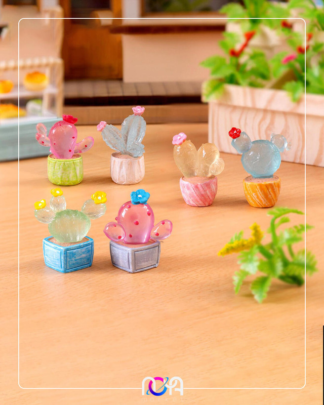 🌵این محصول کاملا اورحینال و وارداتیه، جنس کاکتوسها از رزینه و اندازهشون بین ۲/۵ تا ۳/۵ سانته. همشون هم شبتابن✨