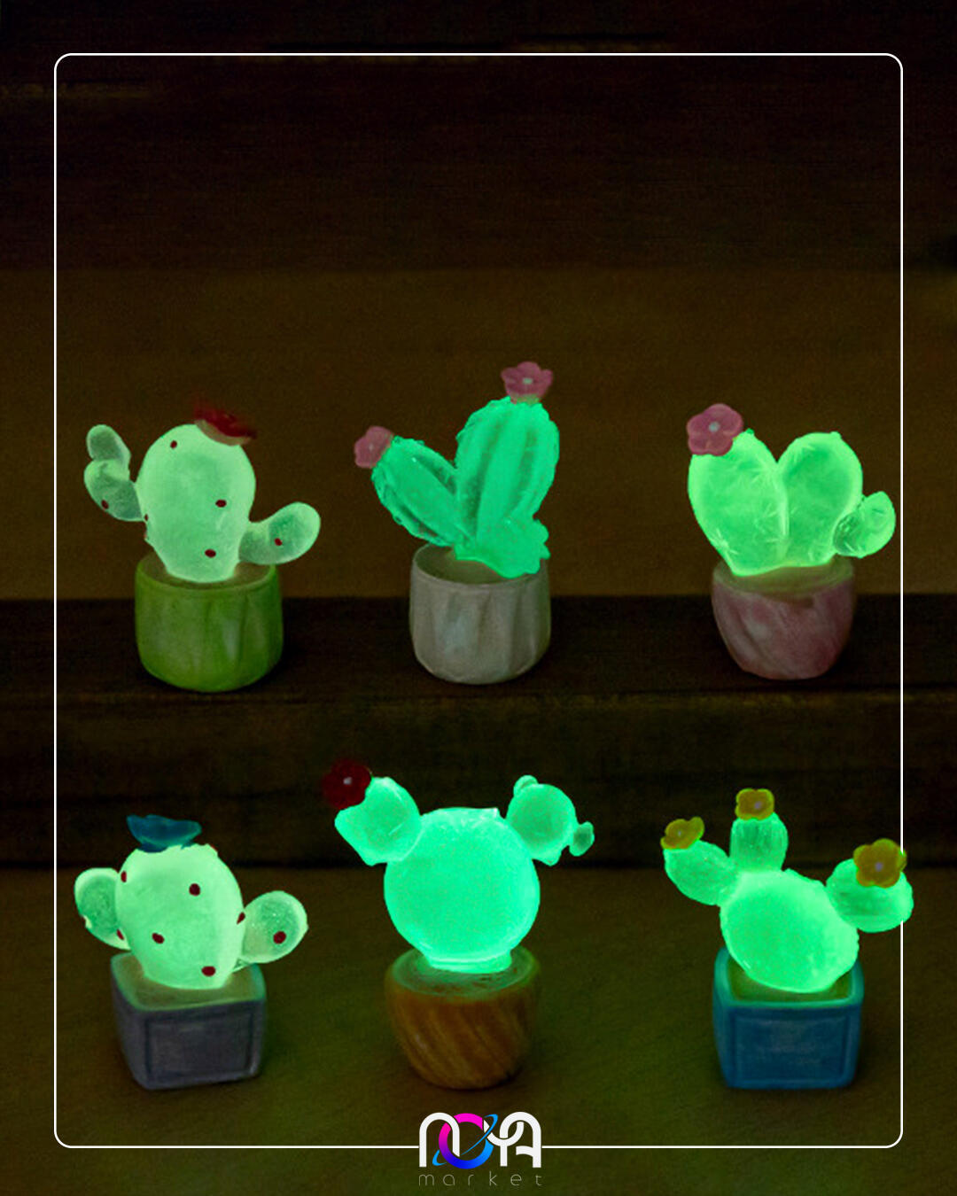 🌵این محصول کاملا اورحینال و وارداتیه، جنس کاکتوسها از رزینه و اندازهشون بین ۲/۵ تا ۳/۵ سانته. همشون هم شبتابن✨