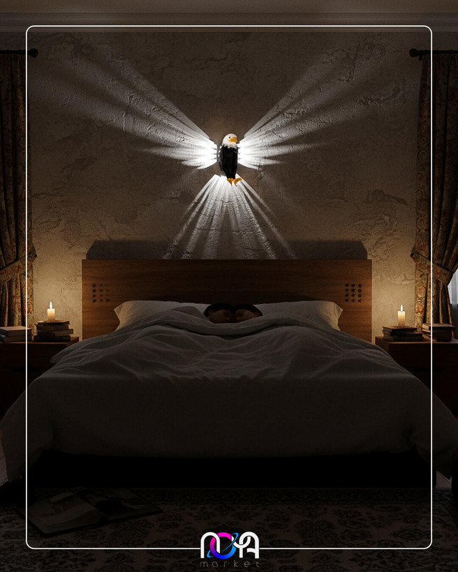🦅نوری که از قسمت بال و دم عقاب به هنگام تاریکی پخش میشه، جلوهی بینظیری به فضای اتاق میده که شبیه هیچ چراغخوابی که تابحال دیدی نیست!✨