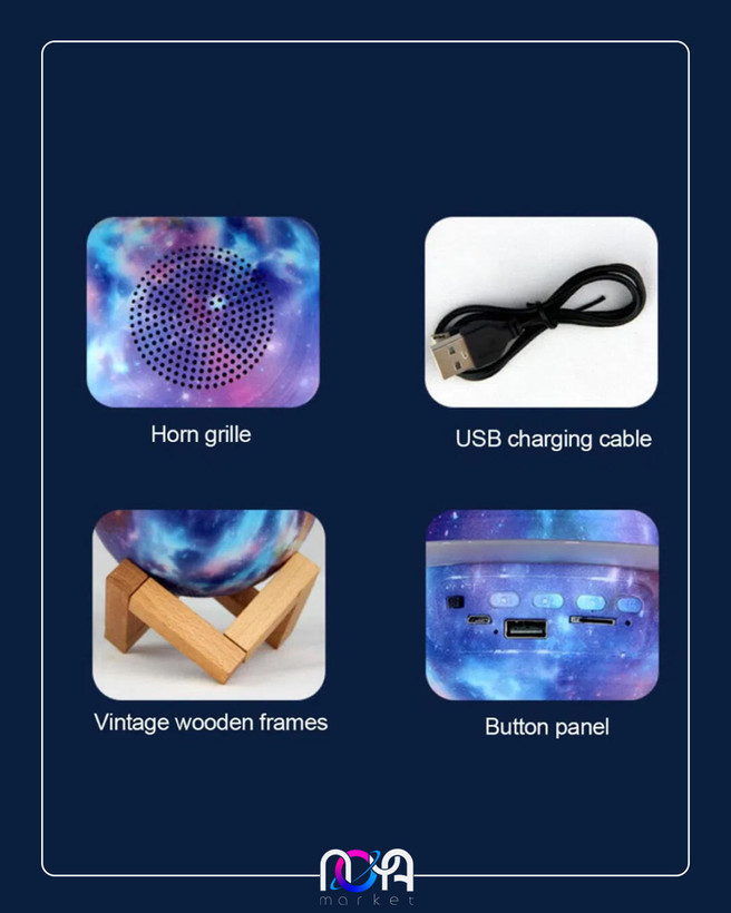 علاوه بر اسپیکر بینظیرش، یک چراغخواب و دکوری باحال هم هست که 12 حالت رنگی داره و با ریموت کنترل میشه رنگهارو تنظیم کرد.